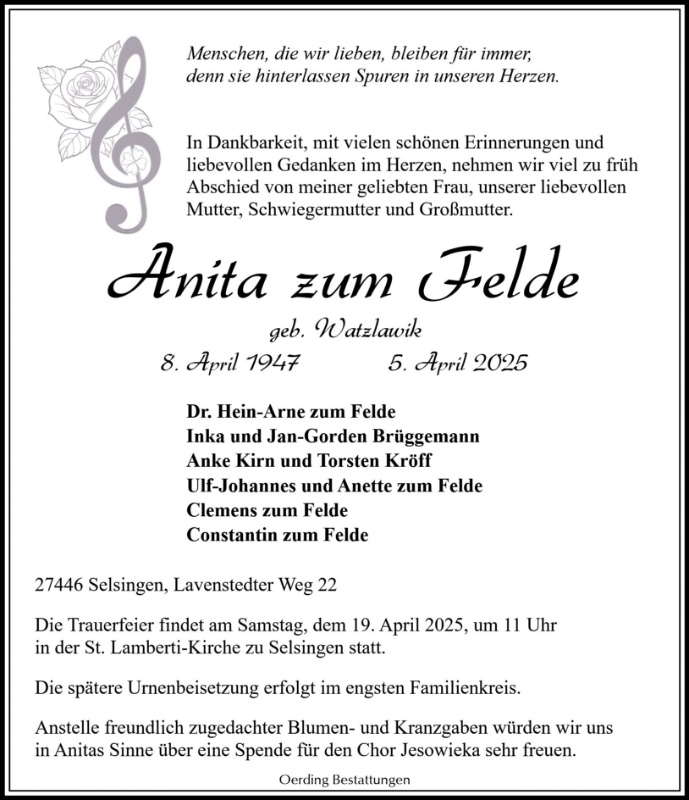 Ein geliebtes Familienmitglied und seine eigene Mutter zu verlieren ist ein Schmerz, der niemals wirklich verschwindet. Ich hoffe, Ihr könnt Trost innerhalb der Familie und dem Gedanken, dass Sie nun von oben herab auf Euch blickt und wacht, finden.